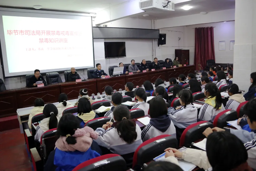 近日,貴州省畢節(jié)強(qiáng)制隔離戒毒所(以下稱畢節(jié)所)攜手畢節(jié)市司法局、威寧縣司法局及畢節(jié)所駐威寧縣專地融合工作站一起走進(jìn)威寧縣第九中學(xué)開展以“青春無‘毒’,綠色守護(hù)”為主題禁毒宣傳活動。