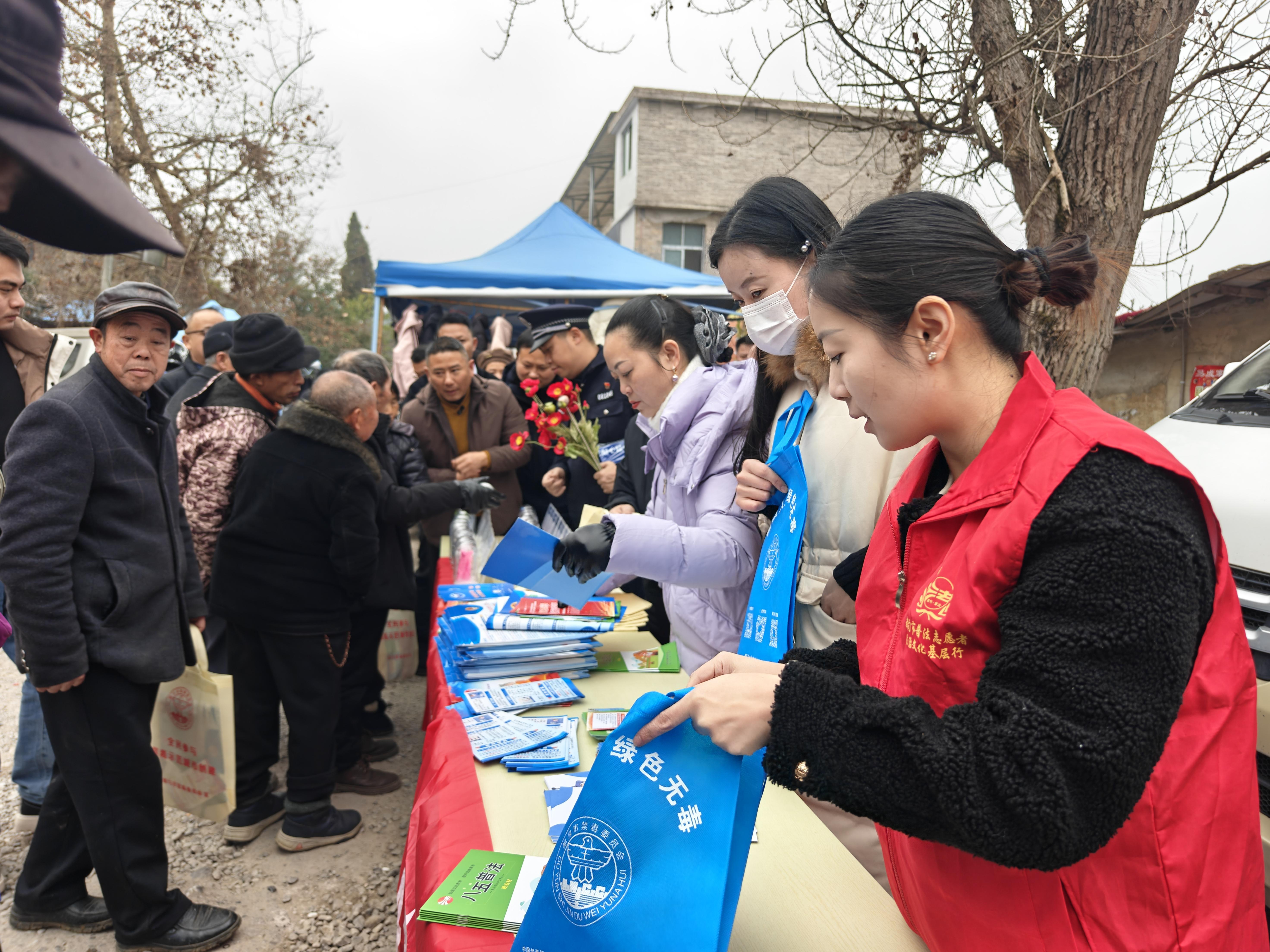 法治宣傳工作人員通過設置咨詢臺、發(fā)放宣傳資料、解答法律問題等方式,向前來趕集的過往群眾開展宣傳宣講,從憲法、民法典、預防毒品、防范電詐、未成年人保護等方面進行普法,引導家長要教育孩子在日常生活中自覺遵紀守法,遠離違法犯罪,增強自我保護能力,尊法學法守法用法,健康快樂成長。