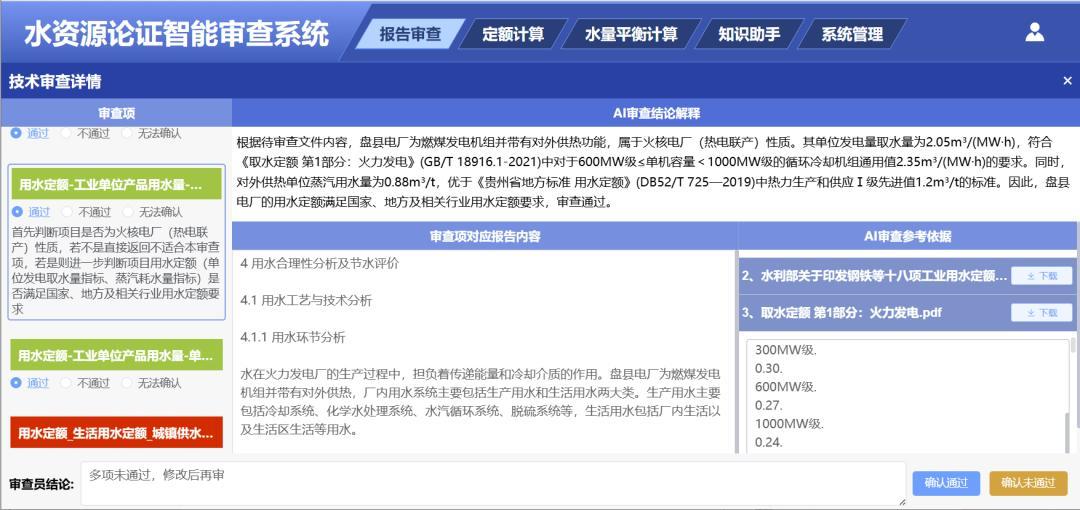 水資源論證報告智能審查系統(tǒng)的應用,可以避免出現(xiàn)因報告書質量差而開展專家審查的不利局面,可以大大提高審查效率,同時也提升了審查的規(guī)范性、公正性和科學性,提高水利新質生產(chǎn)力。
