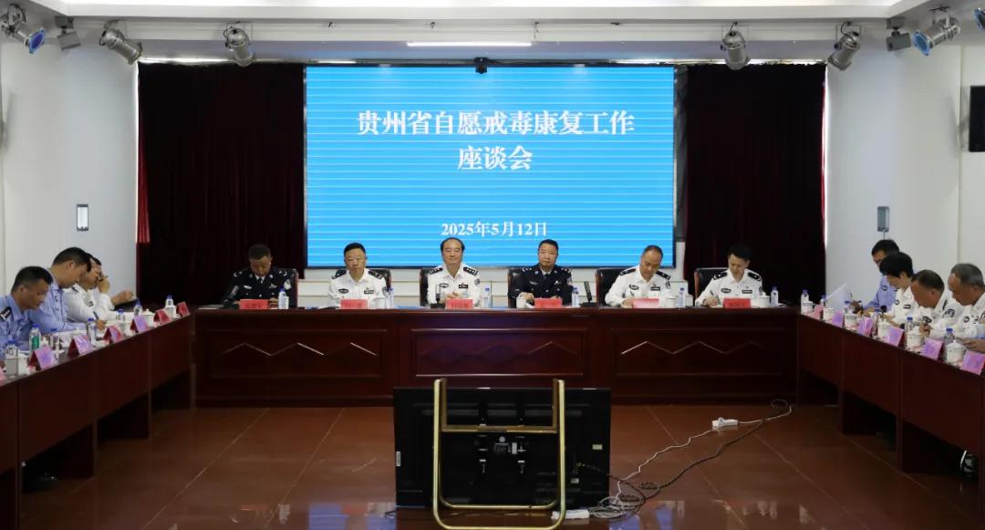 2025年5月12日,貴州省禁毒辦、省戒毒局在省戒毒康復(fù)所組織召開自愿戒毒工作座談會。省禁毒委副主任、省禁毒辦主任、省公安廳黨委委員陽成俊,省司法廳黨委委員、省戒毒局黨委書記、局長王華等出席會議并講話。