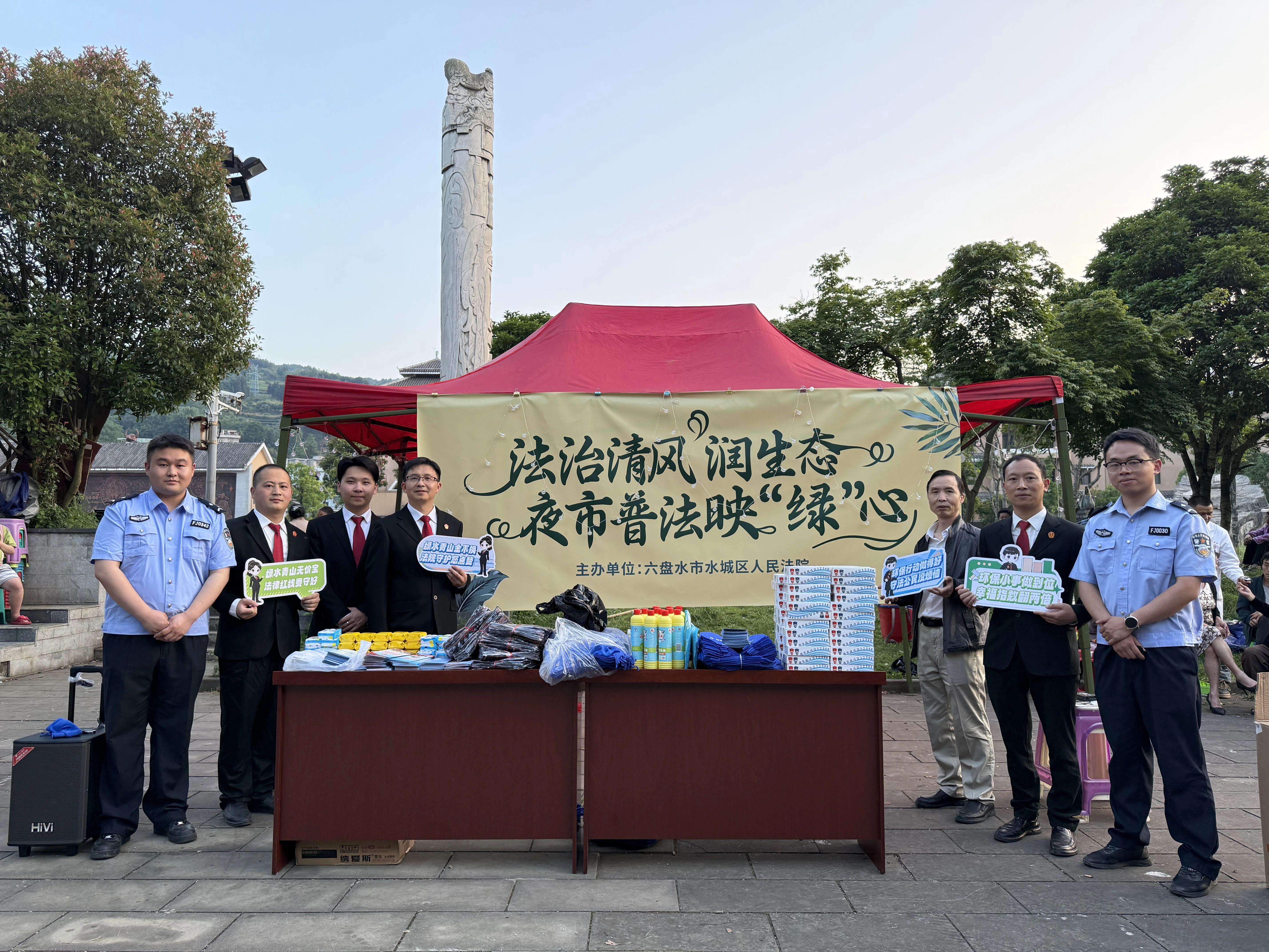 華燈初上,晚風(fēng)輕拂,貴州省六盤水市水城區(qū)玉舍鎮(zhèn)太陽廣場在落日余暉中迎來了一場別開生面的“法治盛宴”。近日,水城法院環(huán)保法庭以“夜市”為載體,創(chuàng)新推出“法治清風(fēng)潤生態(tài)·夜市普法映綠心”主題活動,將生硬的法律條文轉(zhuǎn)化為接地氣的互動體驗(yàn),為當(dāng)?shù)鼐用袼蜕弦粓觥坝辛稀⒂腥?、有溫度”的法治文化大餐?/p>
