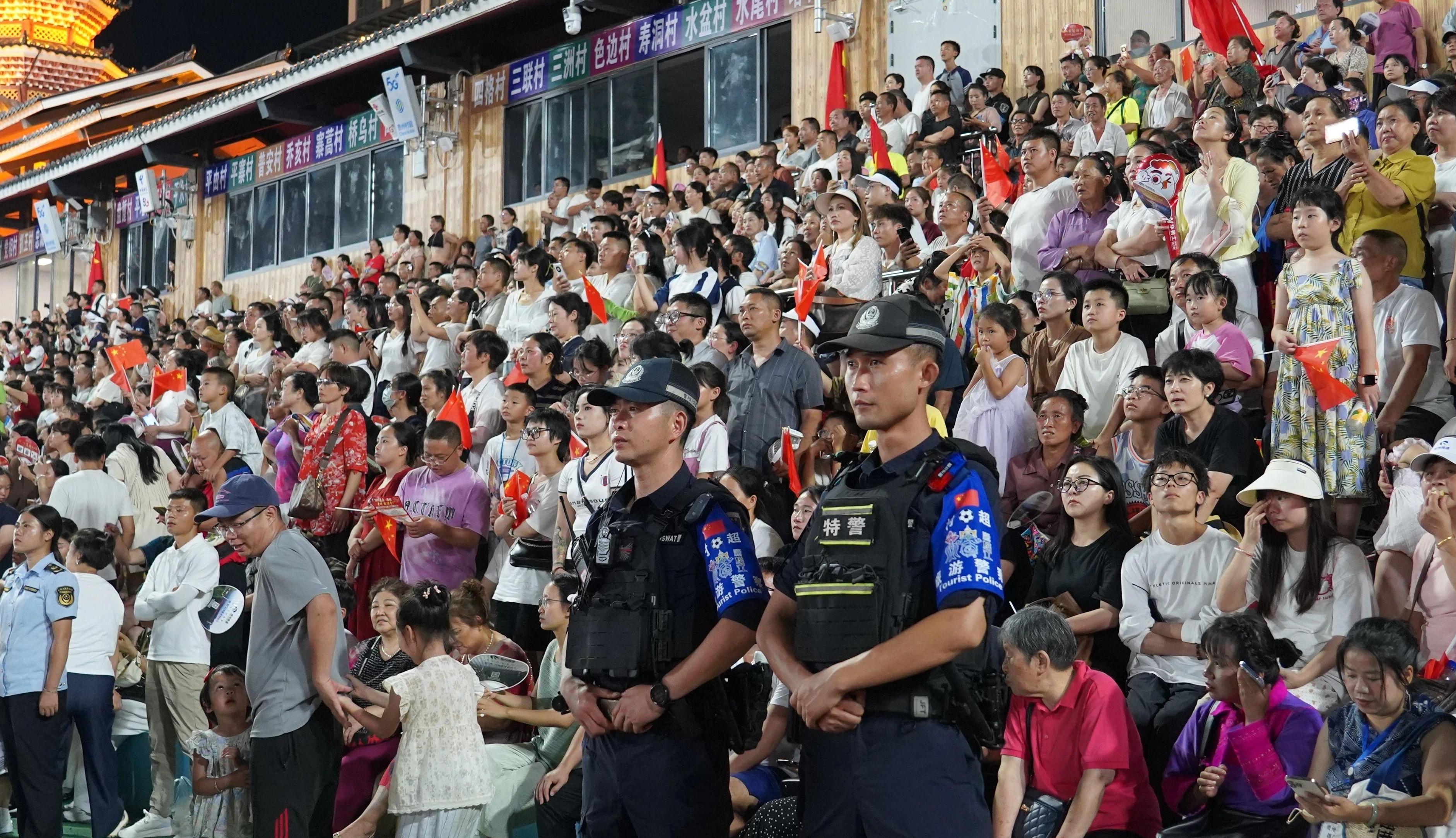 7月26日,“村超”賽事重啟及“感恩雄起 貴州超力量”文藝演出在貴州省黔東南州榕江縣“村超”球場舉辦。貴州公安認(rèn)真貫徹落實(shí)省委、省政府部署要求,精心組織部署,強(qiáng)力推進(jìn)賽事安保各項(xiàng)措施落實(shí),活動(dòng)安保工作取得圓滿成功,實(shí)現(xiàn)了“場地安全、設(shè)施安全、活動(dòng)安全、人員安全”目標(biāo)。