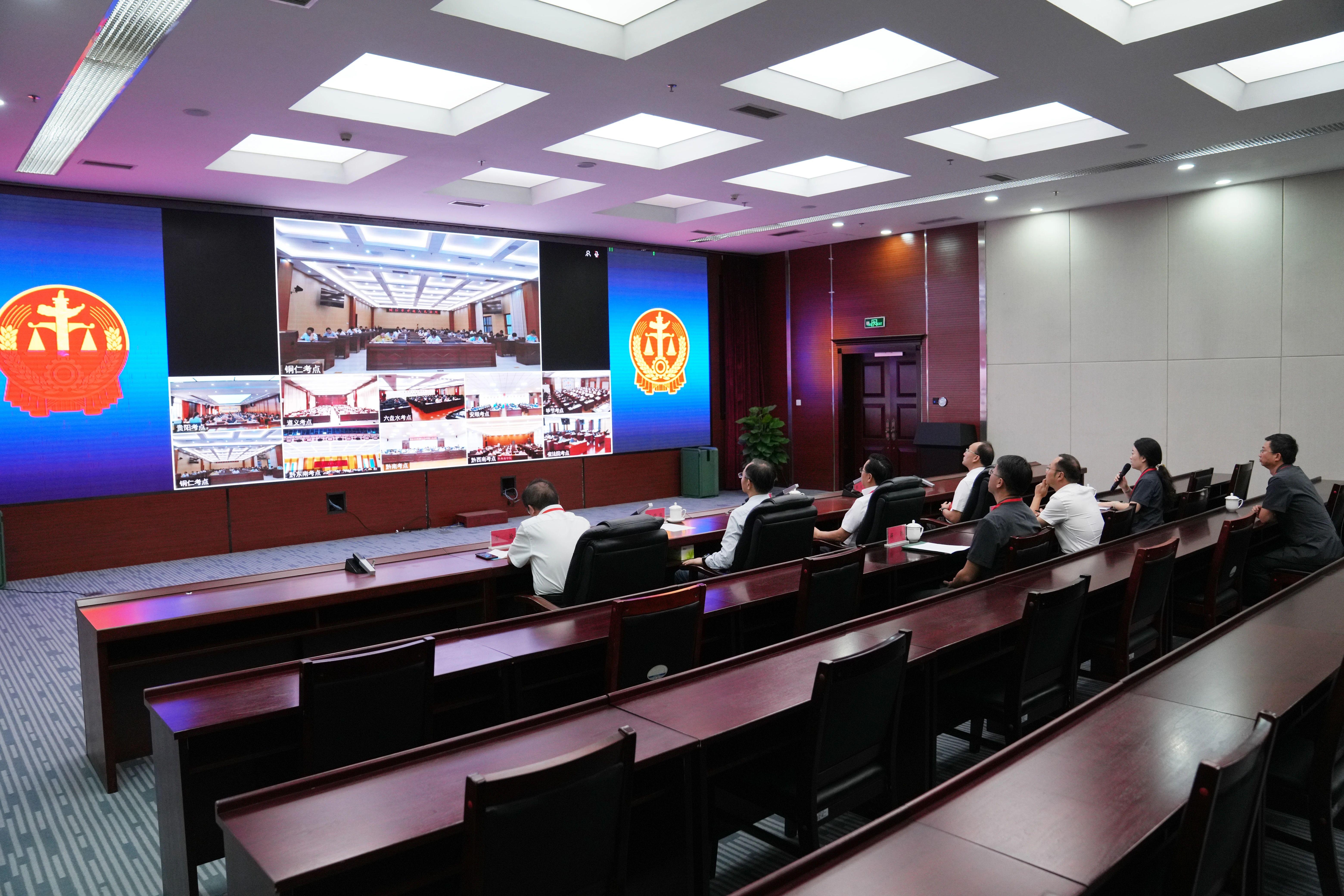 為確保遴選筆試工作順利進行,貴州省高級人民法院結(jié)合工作實際,制定《2025年貴州省員額法官遴選筆試工作方案》,成立工作領(lǐng)導(dǎo)小組,從考務(wù)組織、紀檢監(jiān)督、技術(shù)保障、應(yīng)急處置等方面做了周密詳實的安排部署,并在省法院設(shè)立視頻巡考室,利用視頻會議系統(tǒng)對全省法院10個考點進行全程實時監(jiān)控、視頻巡考。各考點主動邀請同級政法委領(lǐng)導(dǎo)巡考,紀檢監(jiān)察部門全程監(jiān)督,并全程錄音錄像,整個考試過程嚴謹規(guī)范、平穩(wěn)有序。