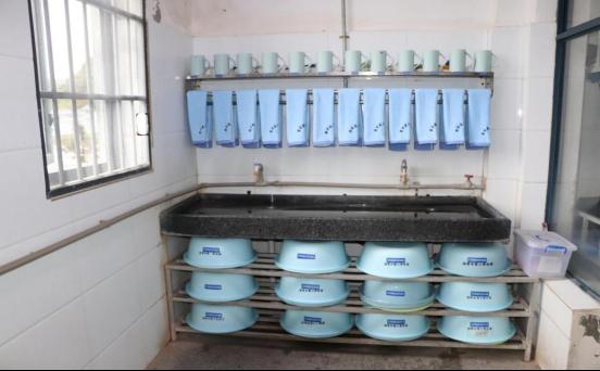 同時,監(jiān)舍內動態(tài)更新的“定置管理牌”“衛(wèi)生分工圖”,清晰標注人員信息與責任區(qū)域,明確“誰負責、管什么、怎么管”。小圓凳編號朝外整齊置于學習桌下,防爆飲水杯按編號定位于杯墊,學習桌各層書籍有序擺放——處處細節(jié)彰顯監(jiān)舍管理的“精準化”標準,營造出“規(guī)范有序、文明整潔”的改造氛圍。不僅是儲物空間與監(jiān)舍,洗漱區(qū)域、公共活動空間等也納入標準化管理范疇,實現(xiàn)公共區(qū)域標準化管理無死角。