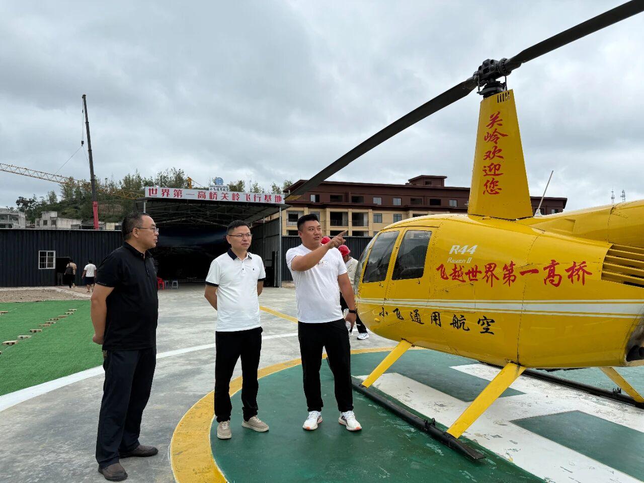 在走訪飛行基地過程中,陳治與基地負(fù)責(zé)人深入交流,詳細(xì)詢問了項目建設(shè)進(jìn)度、遇到的困難以及未來規(guī)劃。據(jù)了解,目前基地已正式投入運營,游客可乘坐直升機從空中俯瞰世界第一高橋——花江峽谷大橋的雄偉身姿,領(lǐng)略峽谷的壯美風(fēng)光,實現(xiàn)“水陸空”360度無死角觀賞。