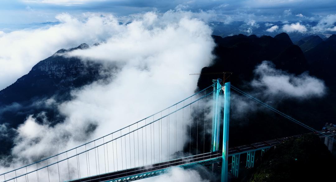 貴州的山,鑄就了堅韌風骨;貴州的橋,延伸著騰飛夢想。面對92.5%的山地和丘陵,貴州發(fā)揚“逢山開路、遇水架橋”的拼搏精神,攻克了峽谷強風、復雜地質(zhì)等世界級難題?;ń瓖{谷大橋巍然屹立于被譽為“地球裂縫”的花江大峽谷之上,大橋全長2890米,主跨徑達1420米,是目前世界山區(qū)峽谷第一大跨度鋼桁梁懸索橋;其橋面距水面垂直高度625米,超越北盤江第一橋成為新的“世界第一高橋”,被譽為“橫豎都是第一”。大橋的建成,不僅是物理高度上的巔峰,更是貴州推動經(jīng)濟社會高質(zhì)量發(fā)展的有力印證。