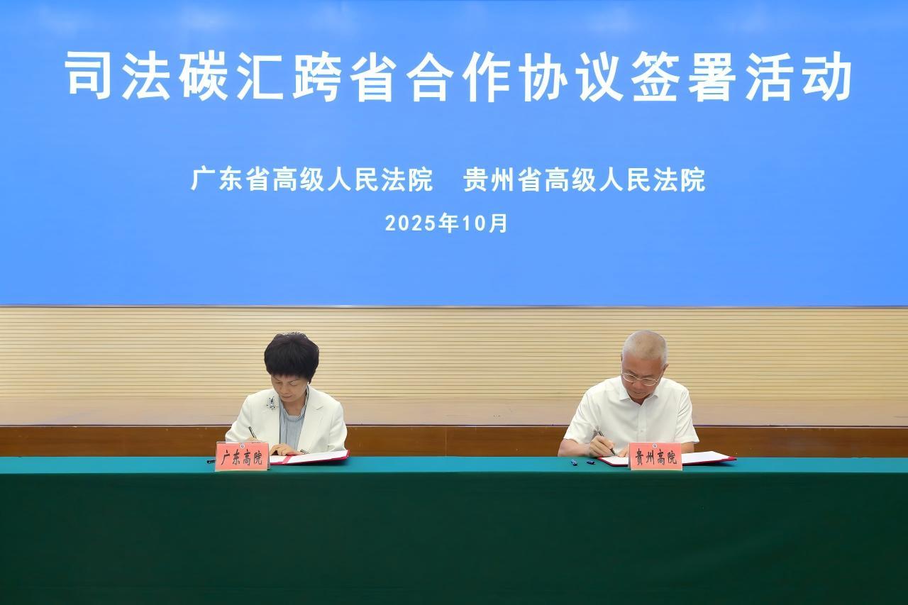 10月13日,廣東省高級(jí)人民法院與貴州省高級(jí)人民法院在廣州舉行司法碳匯跨省合作協(xié)議簽署活動(dòng),此舉標(biāo)志著粵黔兩省法院在環(huán)境資源司法協(xié)作方面邁出重要一步,也為服務(wù)國(guó)家“雙碳”目標(biāo)、推動(dòng)生態(tài)文明建設(shè)注入司法新動(dòng)能。