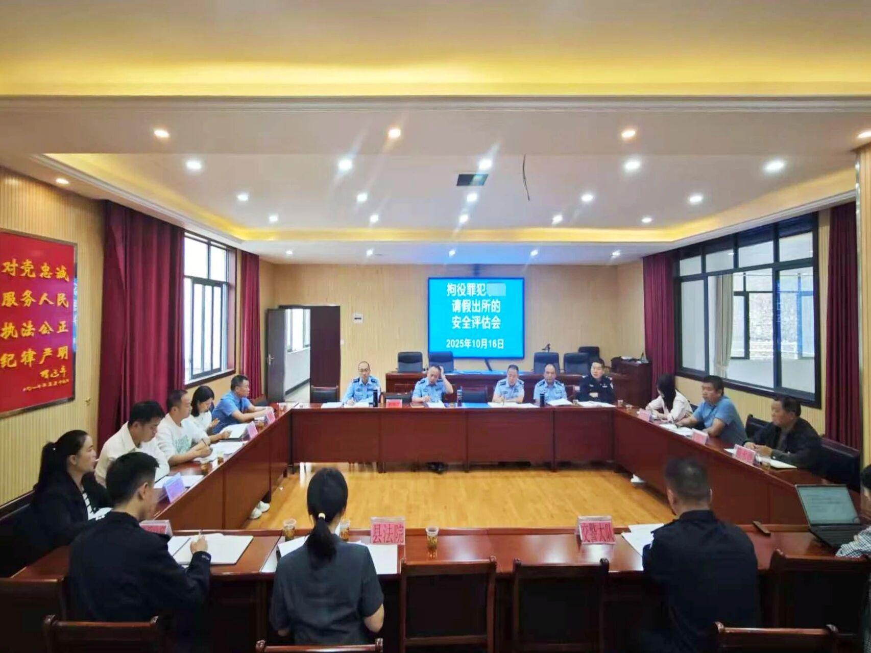 圖為拘役罪犯李某請假出所安全評估會(huì)。