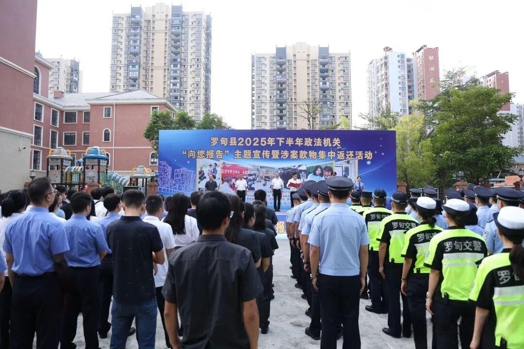 近日,貴州省黔南州羅甸縣舉行2025年下半年政法機關(guān)“向您報告”主題宣傳暨涉案款物集中返還活動。縣人民政府副縣長、縣公安局局長夏春,縣委政法委、縣政法各部門、龍坪鎮(zhèn)、斛興街道辦及涉案款物發(fā)還群眾代表等200余人參加活動。