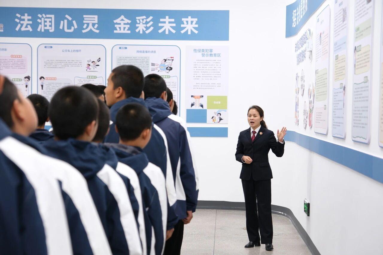 升級(jí)后的基地,通過五大功能區(qū)的協(xié)同聯(lián)動(dòng),為未成年人打造了全方位、沉浸式的法治教育體驗(yàn)場景。法治教育長廊涵蓋法治理念、基礎(chǔ)法律知識(shí),以一個(gè)個(gè)案例警示未成年人,并配備新型毒品仿真模具強(qiáng)化辨識(shí)能力;法治圖書角精選最高檢推薦書目,營造沉浸式閱讀環(huán)境;AI互動(dòng)區(qū)通過法律知識(shí)搶答和虛擬情景決策,實(shí)現(xiàn)從“知道”到“會(huì)用”的跨越;授課區(qū)開展案例研討和角色扮演,推動(dòng)知識(shí)內(nèi)化;談心談話區(qū)提供私密心理疏導(dǎo)空間,在開展個(gè)性化心理疏導(dǎo)的同時(shí),融入法治教育,實(shí)現(xiàn)關(guān)懷與教化的深度融合。