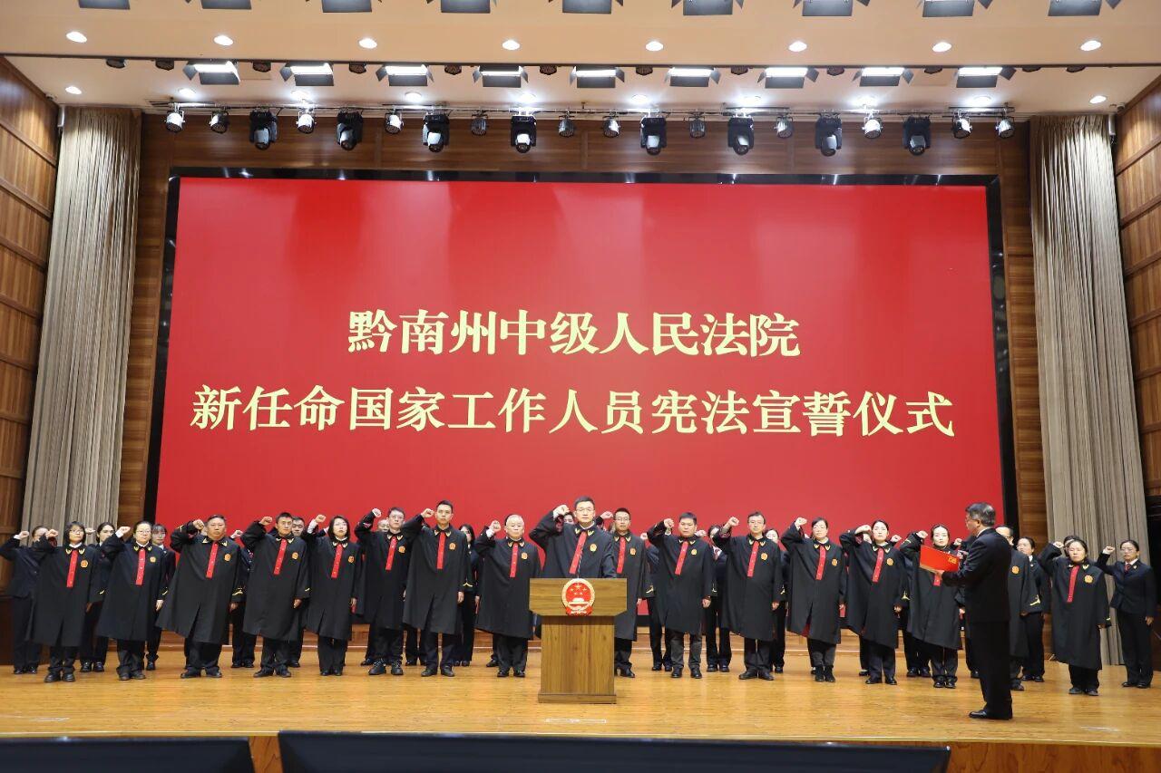 “我宣誓:忠于《中華人民共和國(guó)憲法》,維護(hù)憲法權(quán)威……”黔南中院黨組書記、院長(zhǎng)羅朝國(guó)領(lǐng)誓,全體新任命人員身著法袍或正裝,右手舉拳莊嚴(yán)宣誓,75字誓詞字字千鈞,彰顯對(duì)憲法權(quán)威的尊崇與司法為民的初心。長(zhǎng)順法院同步開展“護(hù)航公正、憲法先行”主題黨日活動(dòng),組織新任命審判員與全體員額法官共同宣誓。“舉起右拳的那一刻,深切感受到憲法的厚重與司法職業(yè)的神圣?!眳⑴c干警紛紛表示,將把誓詞刻入心中、把責(zé)任扛在肩上,爭(zhēng)做讓黨放心、讓人民滿意的司法工作者。