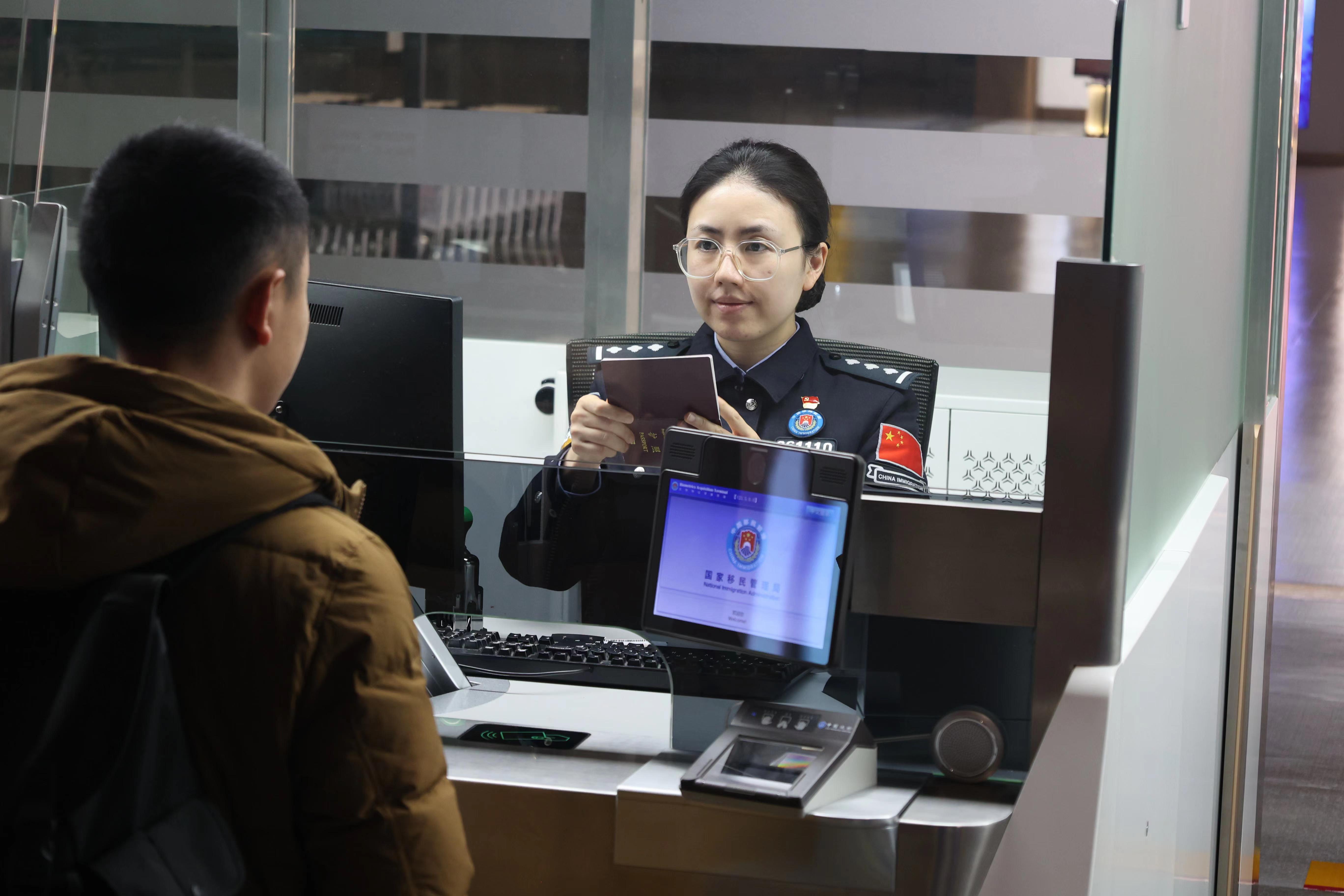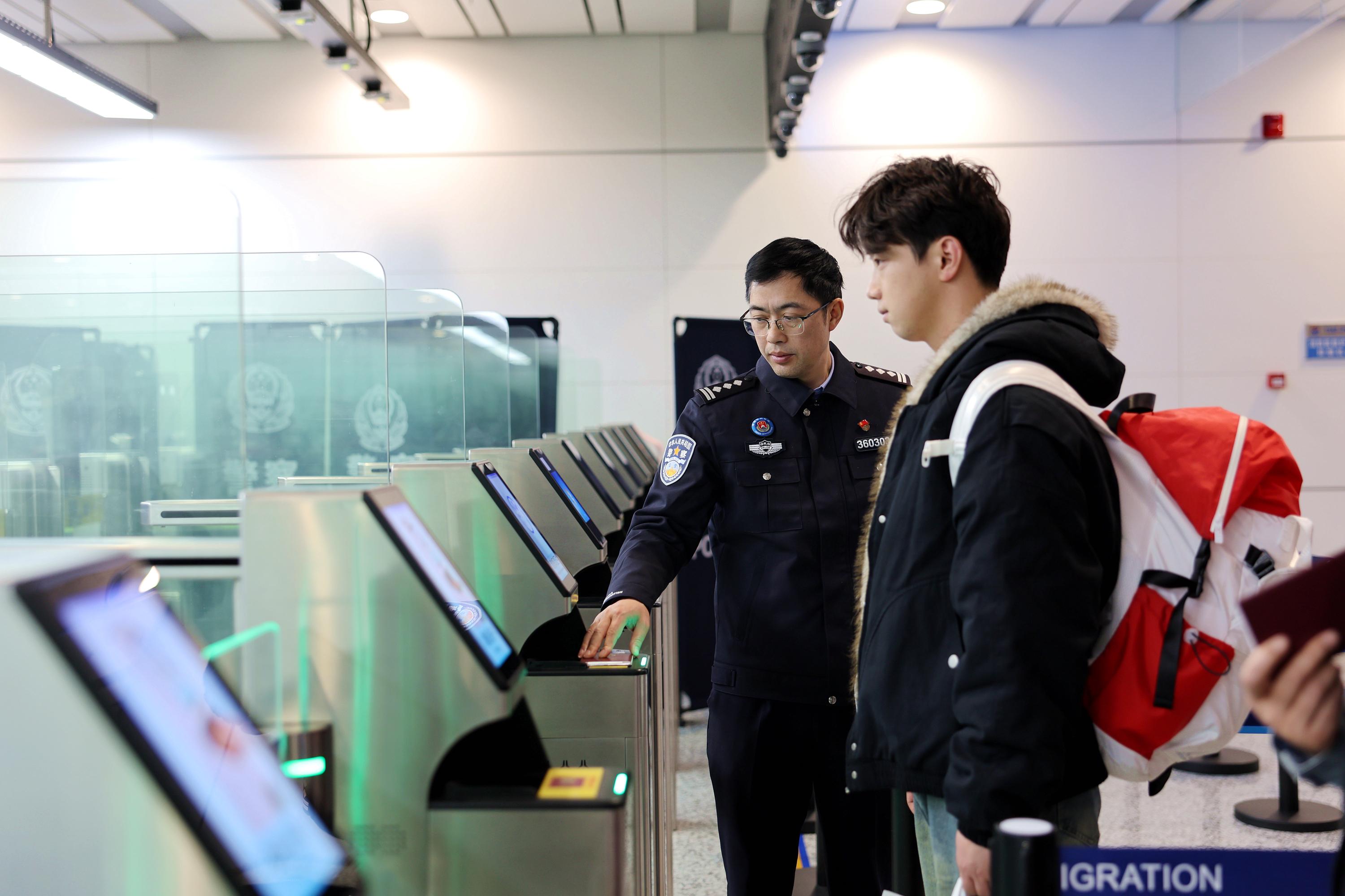 “隨著我國各項便利中外人員往來政策紅利的不斷釋放,近年來我們持續(xù)優(yōu)化邊檢服務(wù)舉措,升級通關(guān)保障設(shè)施,增開查驗通道,科學(xué)調(diào)配警力,有效應(yīng)對客流高峰,保障口岸通關(guān)安全、順暢、高效。同時,前置‘黨員先鋒崗’咨詢引導(dǎo)臺,設(shè)置快捷通關(guān)備案采集點,推行外國人入境卡網(wǎng)上填報等便利措施,讓國門通關(guān)更有溫度?!辟F州出入境邊防檢查總站邊防檢查處處長曠磊介紹道。