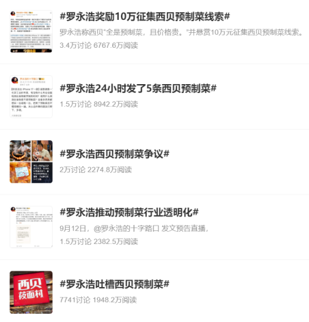 一、羅永浩微博吐槽西貝“幾乎全是預制菜”
