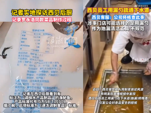 9月12日起,中國藍新聞、百姓315等多家媒體紛紛實地直播探訪各地西貝門店,先后曝出西貝門店后廚使用電磁爐而無明火灶;餐品原材料使用多種保質(zhì)期數(shù)月以上的冷凍食材,包括用于制作兒童餐的“速凍西藍花”、生產(chǎn)自2024年9月的“凍羊腿”、含食品添加劑的“凍海鱸魚”;部分餐品使用轉(zhuǎn)基因大豆油等后廚情況。此外媒體直播還顯示,西貝員工疑似使用廚具漏勺打撈疏通下水道。