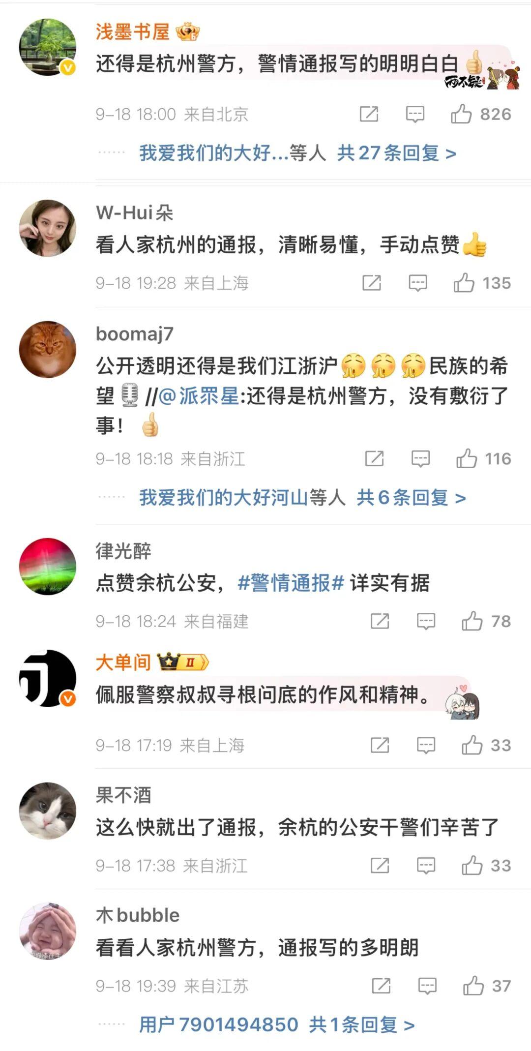 輿論認可警方高效的調(diào)查,如網(wǎng)民“@啊妮貝貝-”評論道,遺棄十年還能查到,杭州公安真不錯;“@teacherwu09”稱這都能抓住,向警方致敬。對于警情通報,大V“@淺墨書屋”稱贊警情通報寫得清清楚楚,明明白白。網(wǎng)民“@W-Hui朵”評價通報清晰易懂,“@律光醉”稱警情通報詳實有據(jù),具有說服力。