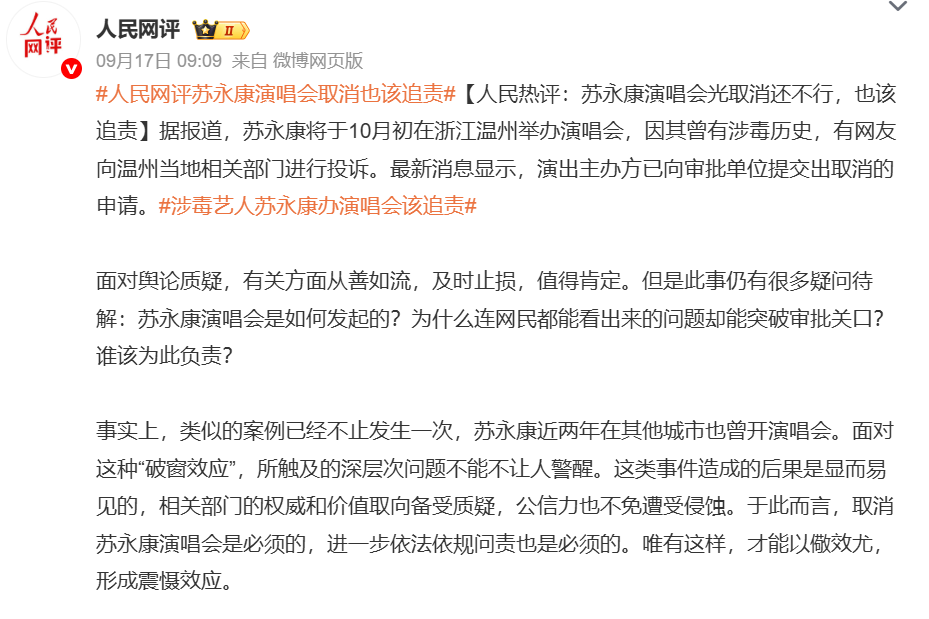 6.蘇永康演唱會主辦方申請取消,涉毒藝人不能復出是底線