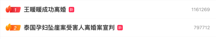 截至10月12日20時,全網(wǎng)信息總量12萬余條,“#王暖暖獲離婚賠償50萬#”“#泰國孕婦墜崖案受害人離婚案宣判#”“#王暖暖成功離婚#”等全平臺相關(guān)話題閱讀量累計14.6億次。
