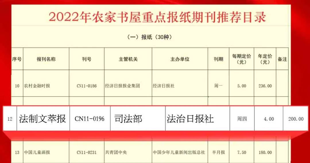 法治鄉(xiāng)村建設(shè)是全面依法治國(guó)的重要組成部分,是推進(jìn)農(nóng)村基層治理體系和治理能力現(xiàn)代化的必然要求,是實(shí)現(xiàn)鄉(xiāng)村振興的基礎(chǔ)與保障。為深入推進(jìn)鄉(xiāng)村振興和法治鄉(xiāng)村建設(shè),充分運(yùn)用好農(nóng)家書(shū)屋這一重要陣地,成功入選《2022年農(nóng)家書(shū)屋重點(diǎn)出版物推薦目錄》、成為該目錄中唯一法治類(lèi)報(bào)紙的《法制文萃報(bào)》即將舉辦“加強(qiáng)法治鄉(xiāng)村建設(shè),助推鄉(xiāng)村振興發(fā)展”系列作品征集活動(dòng)。此次活動(dòng),由法治日?qǐng)?bào)社指導(dǎo),中央重點(diǎn)新聞網(wǎng)站法治網(wǎng)提供平臺(tái)支持。