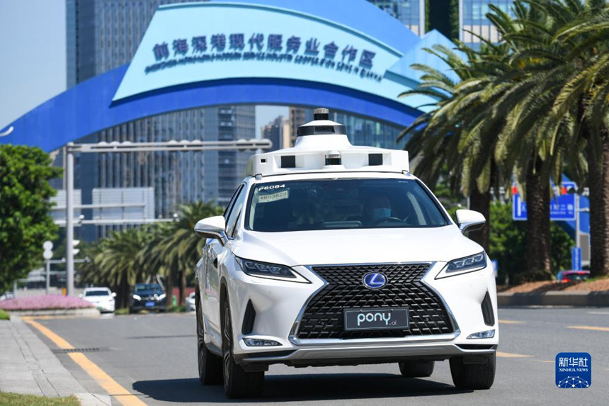 8月1日,在廣東深圳前海,小馬智行自動駕駛汽車在道路上行駛。