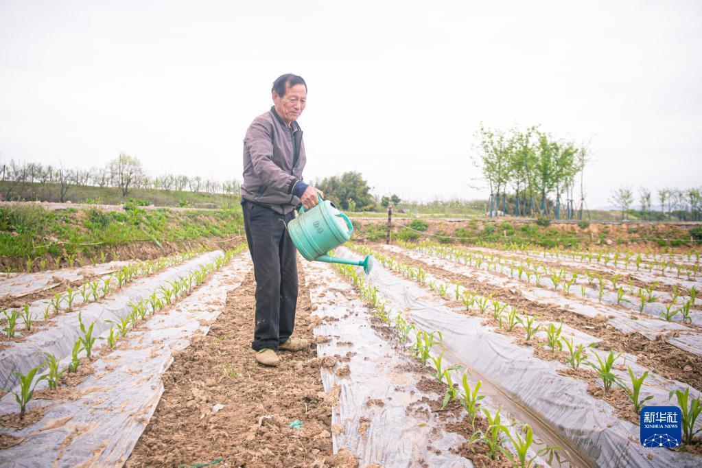 3月29日,在諸暨市楓橋鎮(zhèn)杜黃新村的農耕體驗研學基地,村民為新苗澆水。記者 江漢 攝