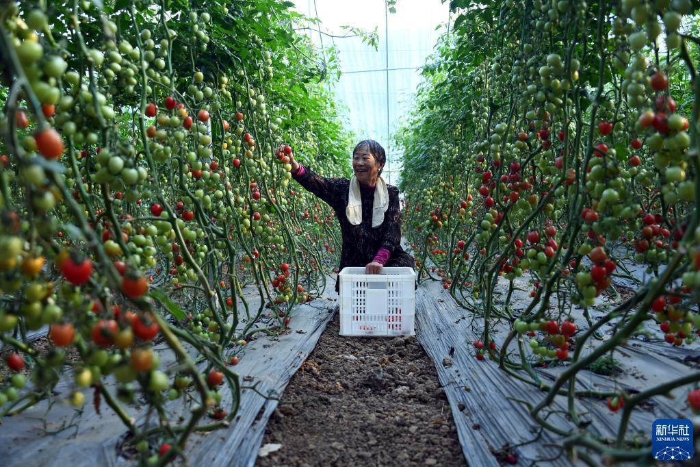 4月1日,菜農(nóng)在棗莊市臺(tái)兒莊區(qū)馬蘭屯鎮(zhèn)按揭農(nóng)業(yè)基地采摘西紅柿。記者 范長(zhǎng)國(guó) 攝