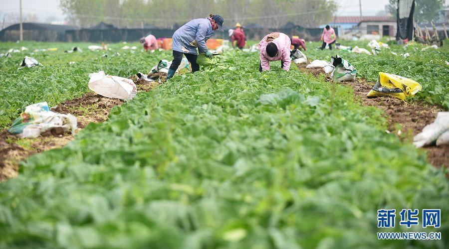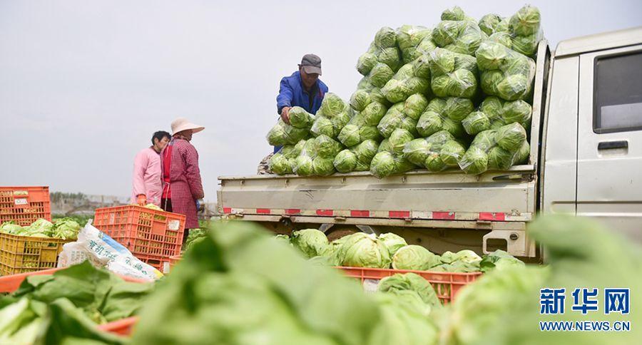 4月5日,在平樂鎮(zhèn)象莊村蔬菜種植基地內,農民正忙著采收新鮮的包菜。黃政偉 攝
