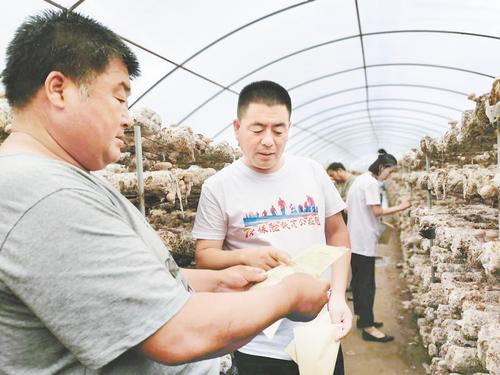中國(guó)太保產(chǎn)險(xiǎn)河北分公司工作人員走訪查看食用菌種植情況。李辰 攝