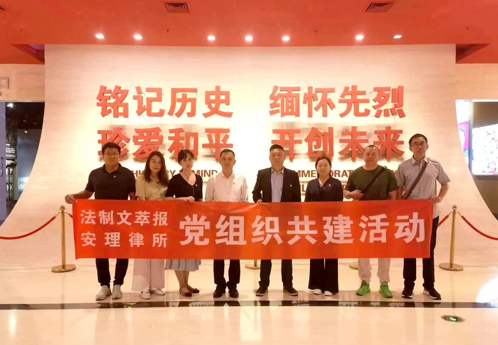 為深入開展學習貫徹習近平新時代中國特色社會主義思想主題教育,引導黨員干部進一步增強黨性觀念,激發(fā)黨員干部的愛國情懷,筑牢黨員干部的理想信念根基,5月24日,法制文萃報與北京市安理律師事務所聯(lián)合開展“銘記歷史,開創(chuàng)未來”主題黨日活動,組織黨員干部參觀中國人民抗日戰(zhàn)爭紀念館、盧溝橋,緬懷革命先烈,踐行使命擔當,用抗戰(zhàn)精神、紅色基因、廉政文化等加強黨員黨性教育。