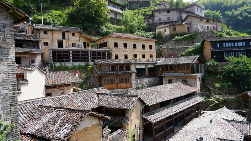陳家鋪村三面環(huán)山,房屋呈崖居式分布,高低落差達(dá)200多米,錯落有致。村里的房屋頂覆青瓦,外敷一種特制黃泥,被雨水沖刷得斑駁點點,更顯韻味?!拔覀儽M量保留傳統(tǒng)村落的風(fēng)貌格局,村里現(xiàn)在還有祠堂、香火堂、古民居、社廟這些古文化建筑。”松陽縣四都鄉(xiāng)黨委委員、陳家鋪村黨支部書記鮑朝火說。