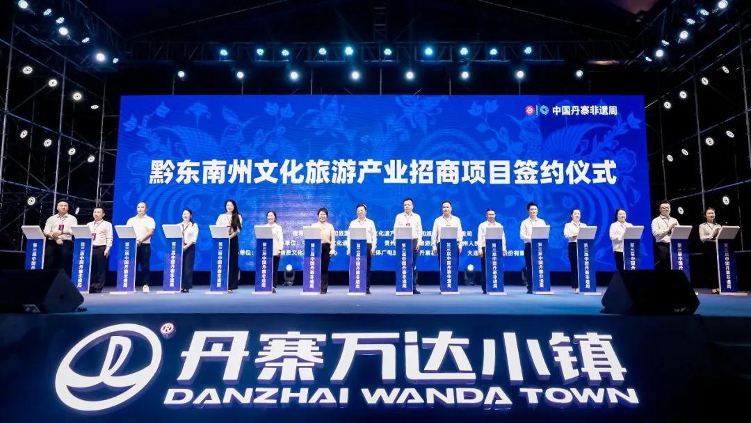 開幕式上,雒樹剛、饒權(quán)、王曉峰、桑維亮、于杰、孫含欣、安九熊、齊界、龍濱共同啟動(dòng)“第三屆中國丹寨非遺周”。會(huì)上還舉行了黔東南州文化旅游產(chǎn)業(yè)招商項(xiàng)目簽約儀式,共簽約文化旅游招商項(xiàng)目16個(gè),協(xié)議總投資25.975億元。隨后,與會(huì)領(lǐng)導(dǎo)和嘉賓還欣賞了黔東南非遺項(xiàng)目展演,并參觀了各非遺巡展點(diǎn)。