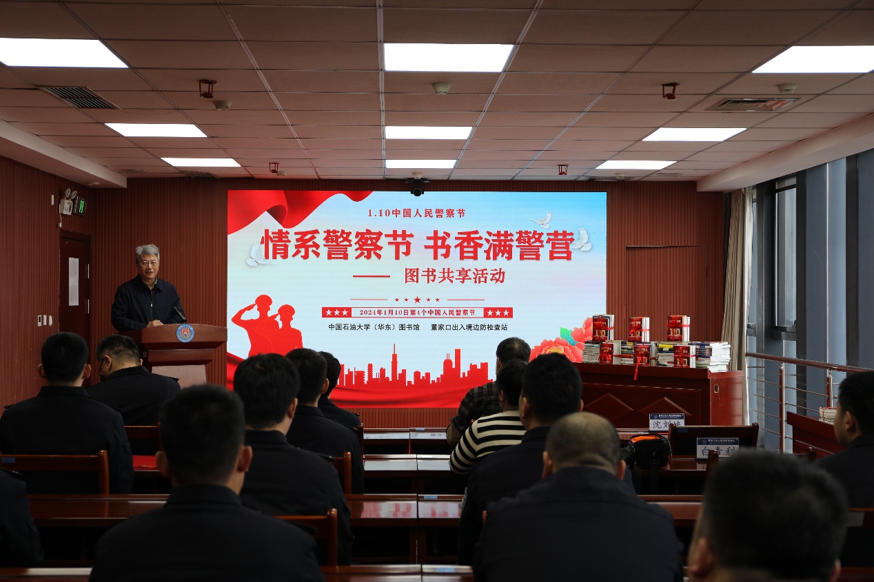 1月8日,山東出入境邊防檢查總站董家口邊檢站與中國(guó)石油大學(xué)(華東)圖書館開展“情系警察節(jié) 書香滿警營(yíng)”圖書共享活動(dòng),慶祝第四個(gè)中國(guó)人民警察節(jié),鼓勵(lì)民警發(fā)現(xiàn)讀書的樂(lè)趣,培養(yǎng)讀書的習(xí)慣,推動(dòng)“書香警營(yíng)”建設(shè)。