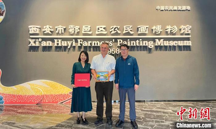 2023年8月,德國(guó)游客參觀西安市鄠邑區(qū)農(nóng)民畫博物館(受訪者供圖)