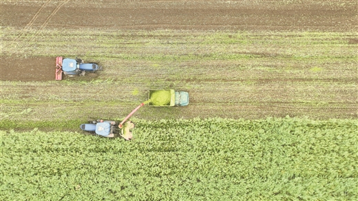 “春種水稻,夏種玉米,冬種油菜,三季輪作為公司養(yǎng)殖生豬、石山羊提供了青貯飼料保障?!?月17日,在平樂鎮(zhèn)高埠村青貯飼料收獲現(xiàn)場,平樂縣大信農(nóng)牧公司管理員張凱說。目前,該公司建立了糧蔬種植基地(一期)1500多畝,在沙子鎮(zhèn)建成年可出欄肉豬30萬頭和石山羊2萬頭的養(yǎng)殖場。