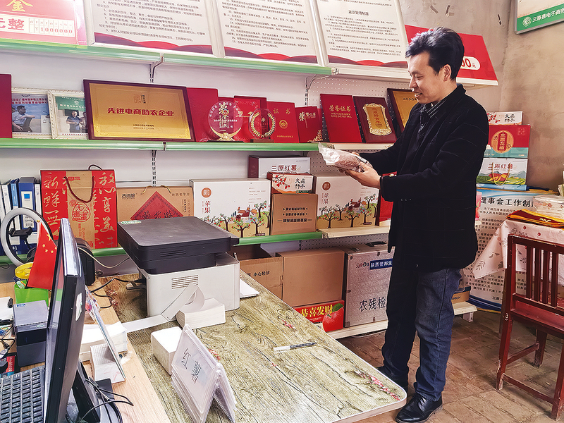 王博今年42歲,學(xué)校畢業(yè)后,曾經(jīng)打過工,也做過小生意。他本就是農(nóng)村娃,對(duì)家鄉(xiāng)有著深深的眷戀。返鄉(xiāng)創(chuàng)業(yè)的念頭一旦萌生,王博就遵從內(nèi)心的召喚,回到了家鄉(xiāng)。2018年,隨著三原縣電子商務(wù)進(jìn)農(nóng)村綜合項(xiàng)目初步落地,王博敏銳地意識(shí)到電子商務(wù)在農(nóng)村的發(fā)展前景,他嘗試著在村里開網(wǎng)店。