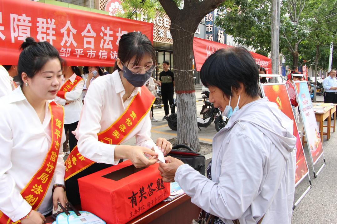 濰坊市信訪局聯(lián)合32個(gè)市直部門,威海市區(qū)兩級(jí)信訪部門聯(lián)合鎮(zhèn)街,日照市縣鄉(xiāng)三級(jí)信訪干部、基層網(wǎng)格員、社區(qū)工作者、法律志愿者,以及德州、濱州等地有關(guān)部門,也紛紛在當(dāng)?shù)氐幕顒?dòng)現(xiàn)場通過懸掛宣傳橫幅、擺放宣傳展臺(tái)、設(shè)置宣傳看板、發(fā)放宣傳手冊等形式,向過往群眾普及信訪工作法治化常識(shí),并就群眾關(guān)心的信訪相關(guān)問題進(jìn)行了現(xiàn)場答疑,讓群眾對(duì)信訪工作有更深入的了解,引導(dǎo)群眾依法理性表達(dá)訴求。