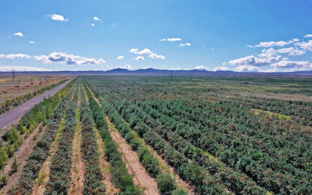 經(jīng)過十余年深耕,匯源在阿勒泰地區(qū)布爾津縣所種植的沙棘林規(guī)模已近10萬(wàn)畝,大片的戈壁荒灘搖身一變成了一眼望不到邊際的綠洲,將沙塵暴對(duì)沿途地區(qū)生態(tài)環(huán)境造成的不利影響降至最低。