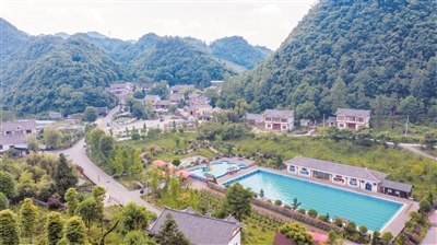 5月25日,走進(jìn)百里杜鵑戛木管理區(qū)大堰村,國家3A級景區(qū)米底河繞村而過,青山相擁、碧水環(huán)繞、云朵如絮,海恩底度假村內(nèi),錯落有致的民居散落于群山間。文化廣場旁的泳池里,不少避暑游客在這里游泳、燒烤、唱歌,好不愜意。