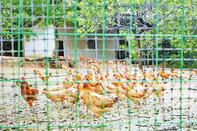 6月28日,秀山縣一養(yǎng)殖基地的秀山雞在空地上悠閑地散步 記者 尹詩(shī)語(yǔ) 攝