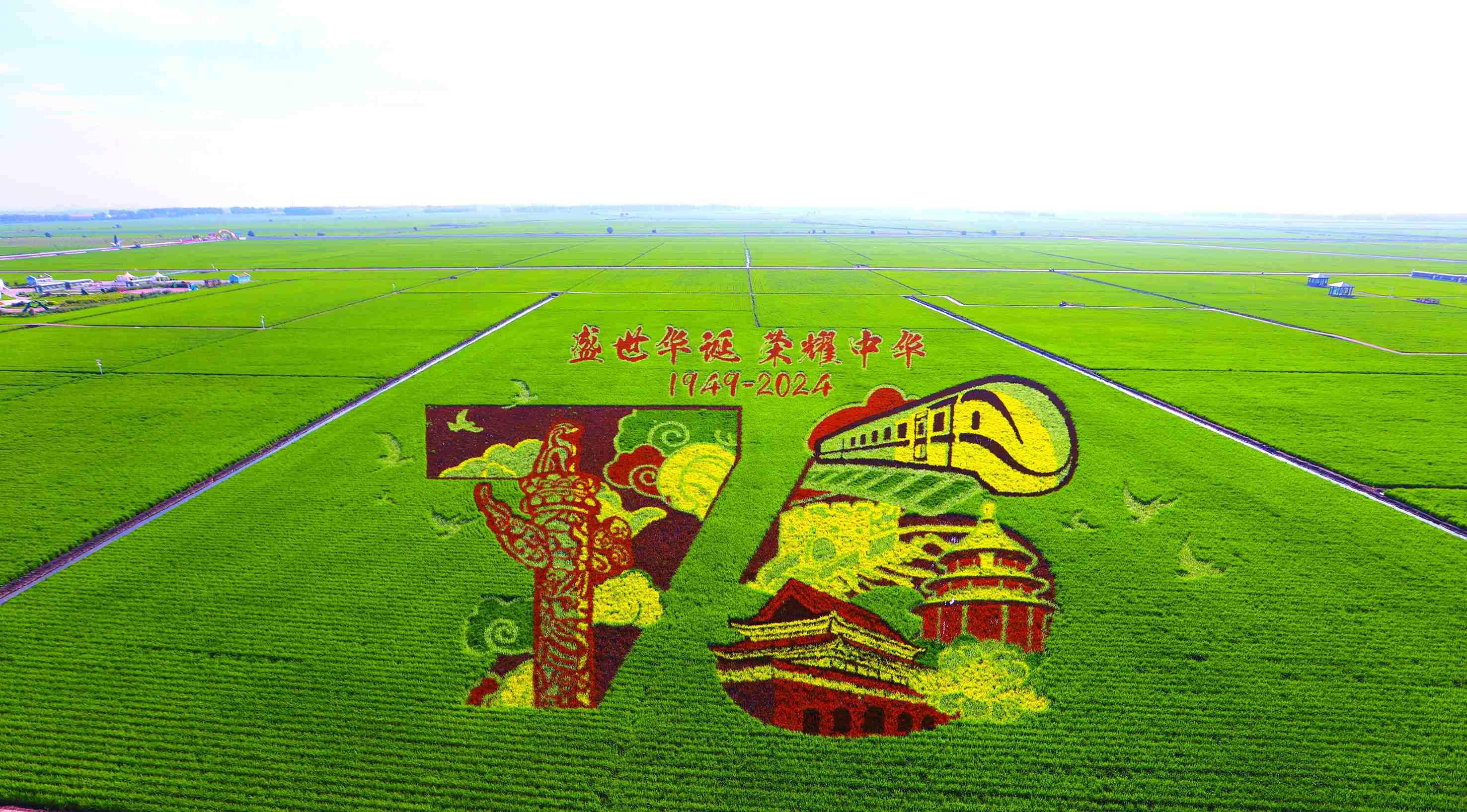 萬畝水稻公園中的稻田畫(富錦市文體廣電和旅游局供圖)