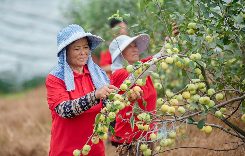 農(nóng)戶正在采摘“來安花紅” 呂華 攝