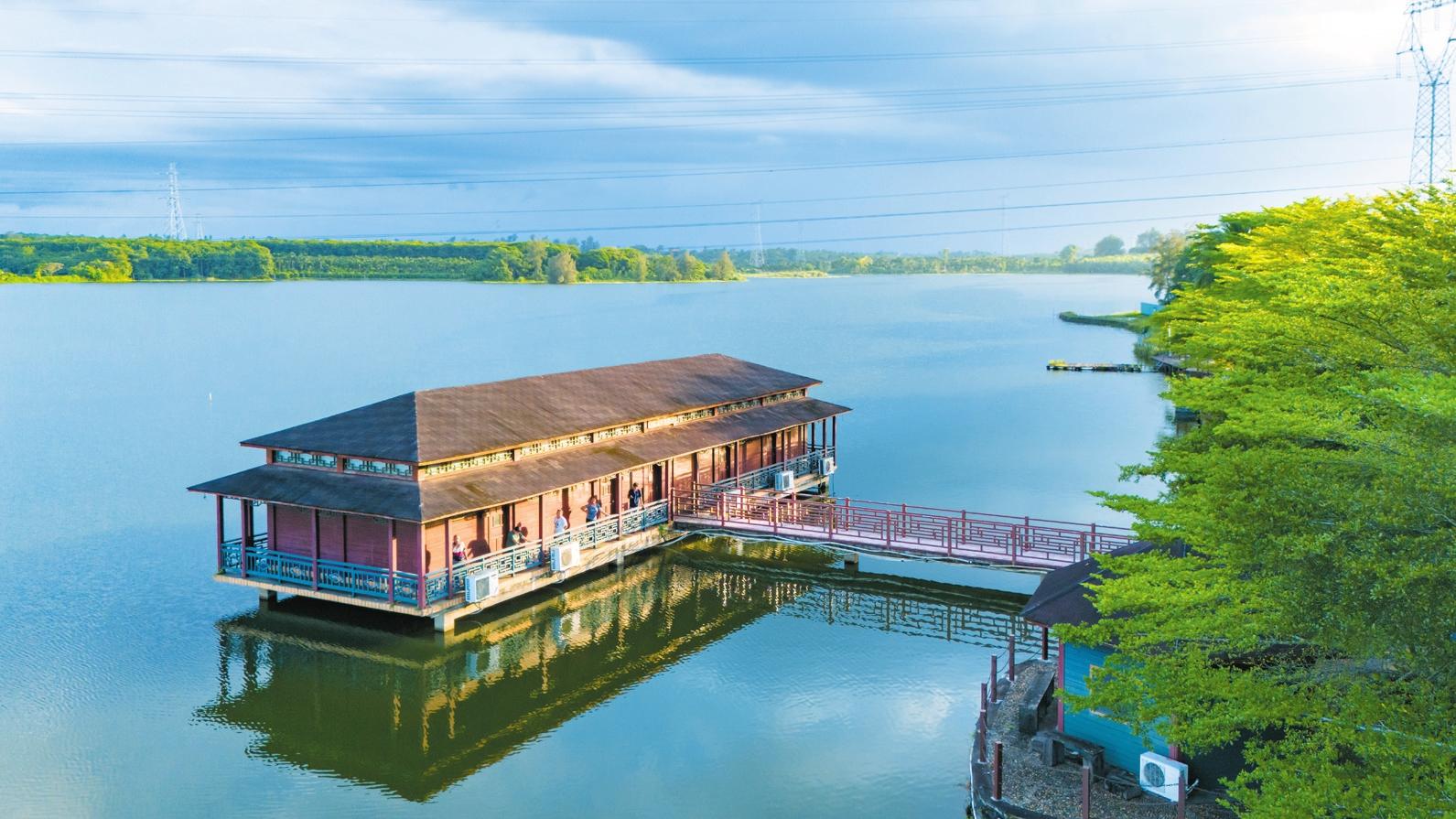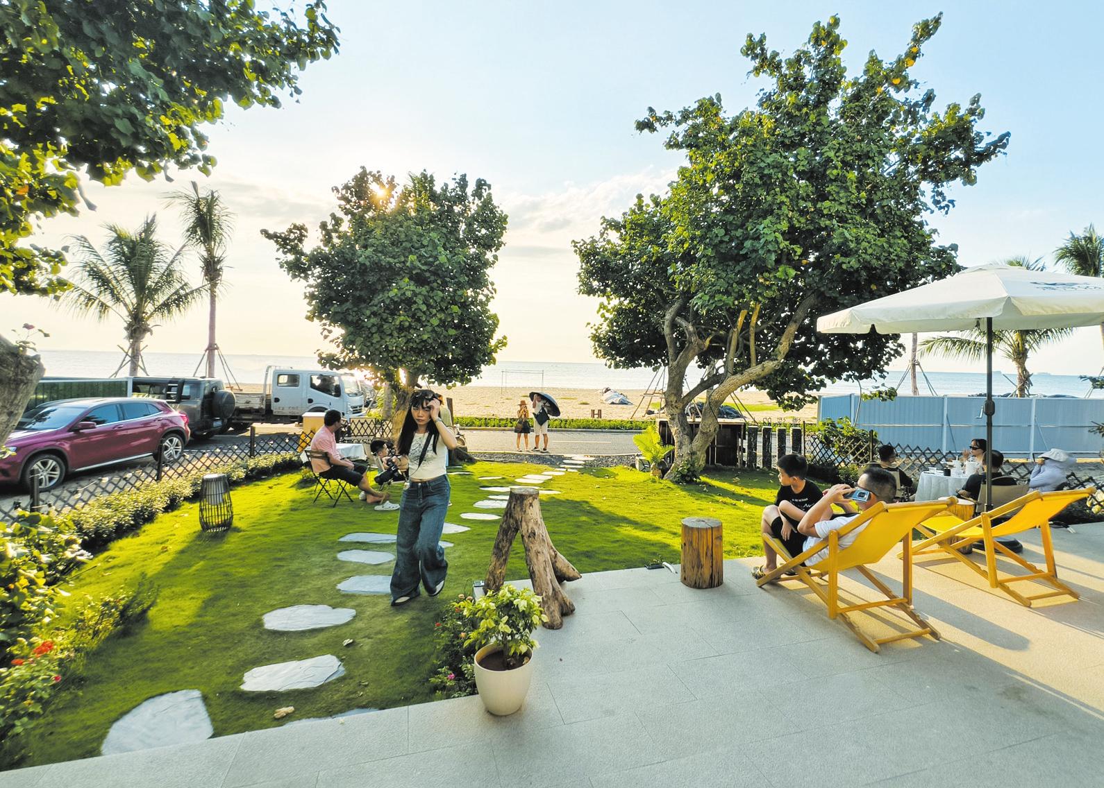 游客在秀英區(qū)西秀鎮(zhèn)榮山寮村漂浮的人民宿享受愜意時(shí)光 記者 石中華 攝