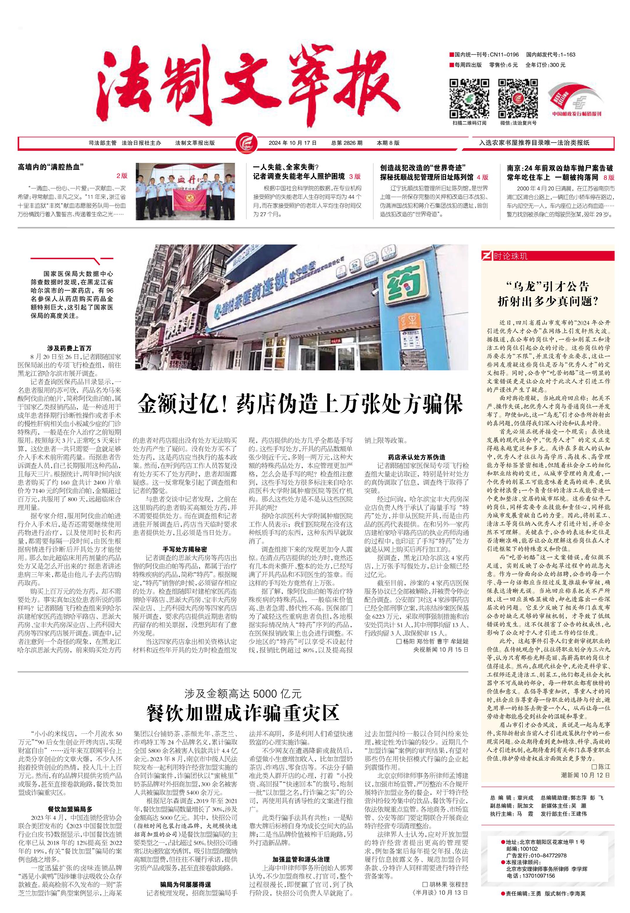 2024年10月17日《法制文萃報》總第2826期1版