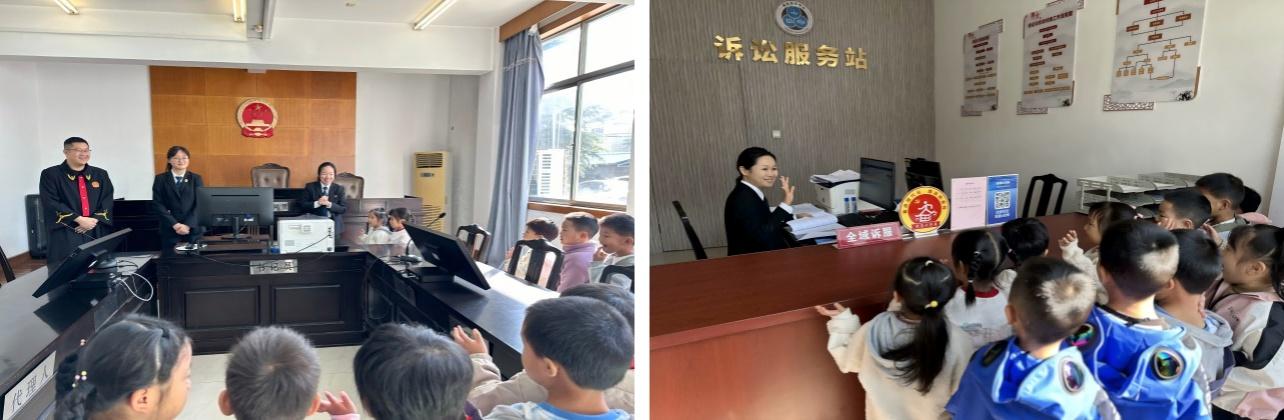 一進入法庭,孩子們便被那莊嚴肅穆的氛圍深深感染。他們滿懷著好奇,仔細觀察著周圍的一切,心中對法治的敬畏與向往油然而生。在工作人員的精心安排下,小朋友們依次參觀了調(diào)解室、庭審室,初步了解了法庭的職責以及相關法律常識。孩子們聽得全神貫注,不時提出各種問題,與工作人員積極互動交流。
