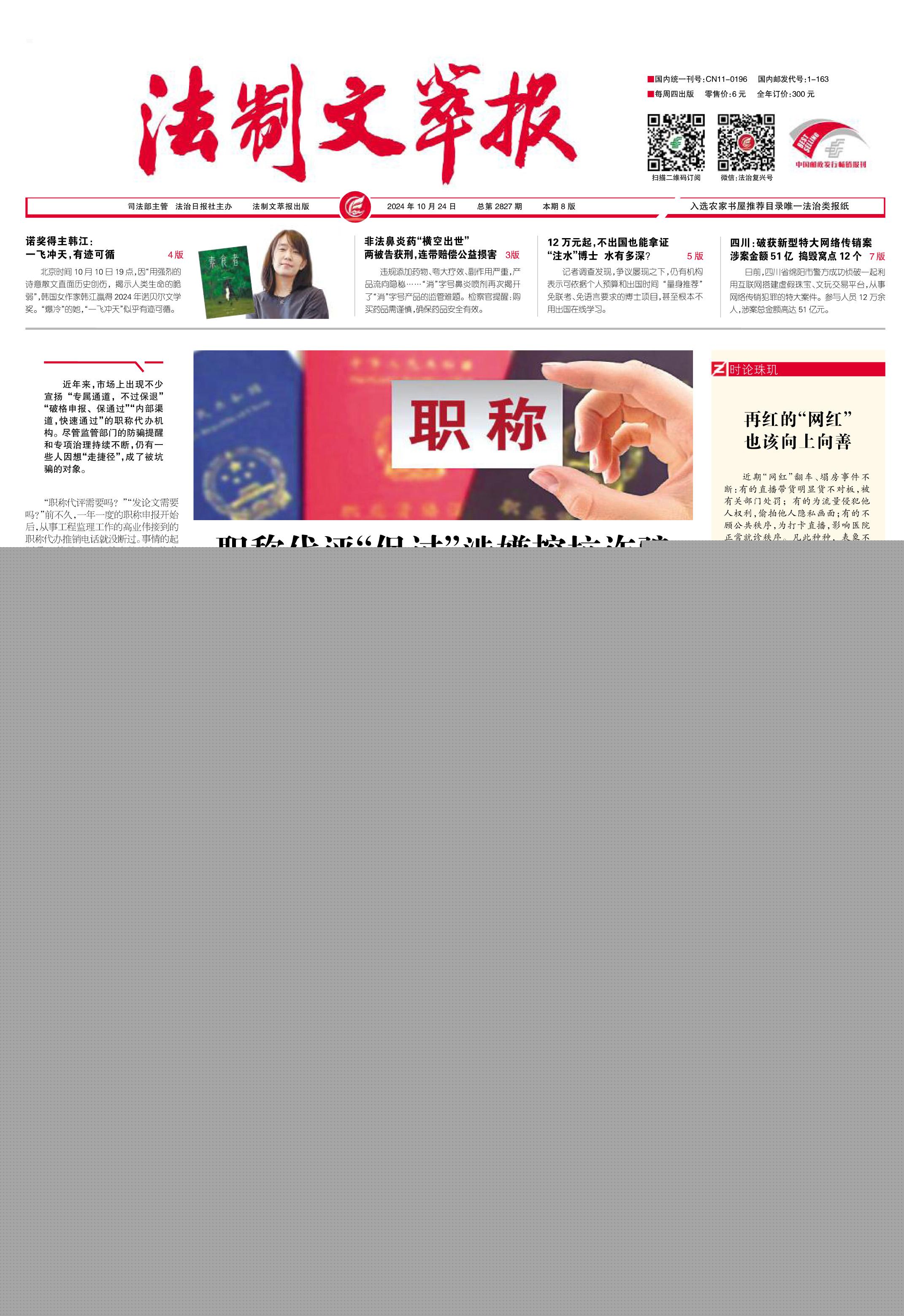 2024年10月24日《法制文萃報(bào)》總第2827期1版