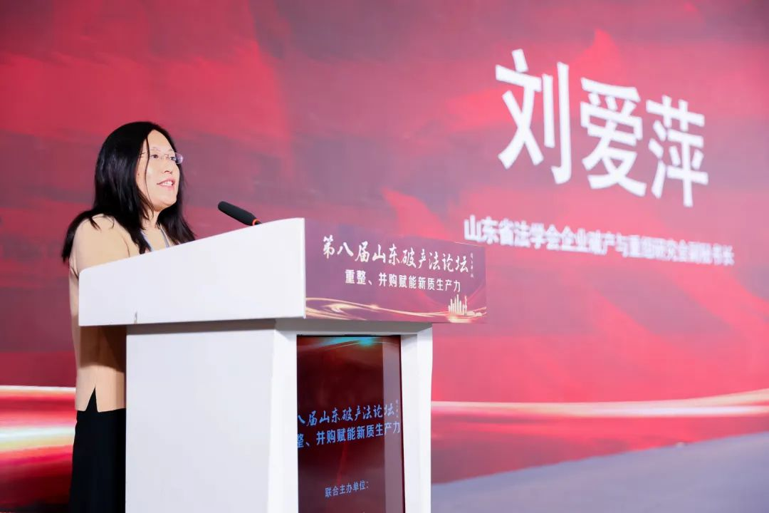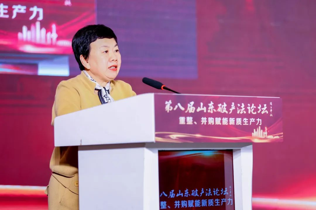 2024年11月10日,第八屆山東破產(chǎn)法論壇在濟(jì)南成功舉辦。本屆論壇由全聯(lián)并購公會、山東金融業(yè)聯(lián)合會、山東省不良資產(chǎn)處置協(xié)會、山東大學(xué)交叉法學(xué)研究院、浙江工商大學(xué)破產(chǎn)重組研究院、山東省法學(xué)會企業(yè)破產(chǎn)與重組研究會聯(lián)合主辦。本屆論壇緊緊圍繞“新質(zhì)生產(chǎn)力”的深刻內(nèi)涵,聚焦“重整并購賦能新質(zhì)生產(chǎn)力”這一核心主題展開研討。山東法學(xué)會企業(yè)破產(chǎn)與重組研究會名譽(yù)會長、山東省高級人民法院原院長周玉華;全國工商聯(lián)第十三屆常委、全聯(lián)并購公會會長尉立東;山東金融業(yè)聯(lián)合會秘書長何修崟;山東省不良資產(chǎn)處置協(xié)會會長李薇華;中國法學(xué)會世界貿(mào)易組織法研究會副會長兼秘書長、中國人民大學(xué)特聘教授石靜霞;華東政法大學(xué)國際金融法律學(xué)院教授、浙江省高級人民法院原民二庭庭長章恒筑出席開幕式。山東省法學(xué)會企業(yè)破產(chǎn)與重組研究會會長劉平主持開幕式。全國工商聯(lián)第十三屆常委、全聯(lián)并購公會會長尉立東,山東省不良資產(chǎn)處置協(xié)會會長李薇華在開幕式上致辭演講。6位主旨演講嘉賓、28位主題演講嘉賓圍繞各主題、議題,展開了為期一天的深入研討。全聯(lián)并購公會副會長、山東省法學(xué)會企業(yè)破產(chǎn)與重組研究會副會長兼秘書長、山東華信清算重組集團(tuán)有限公司董事長提瑞婷作閉幕致辭。