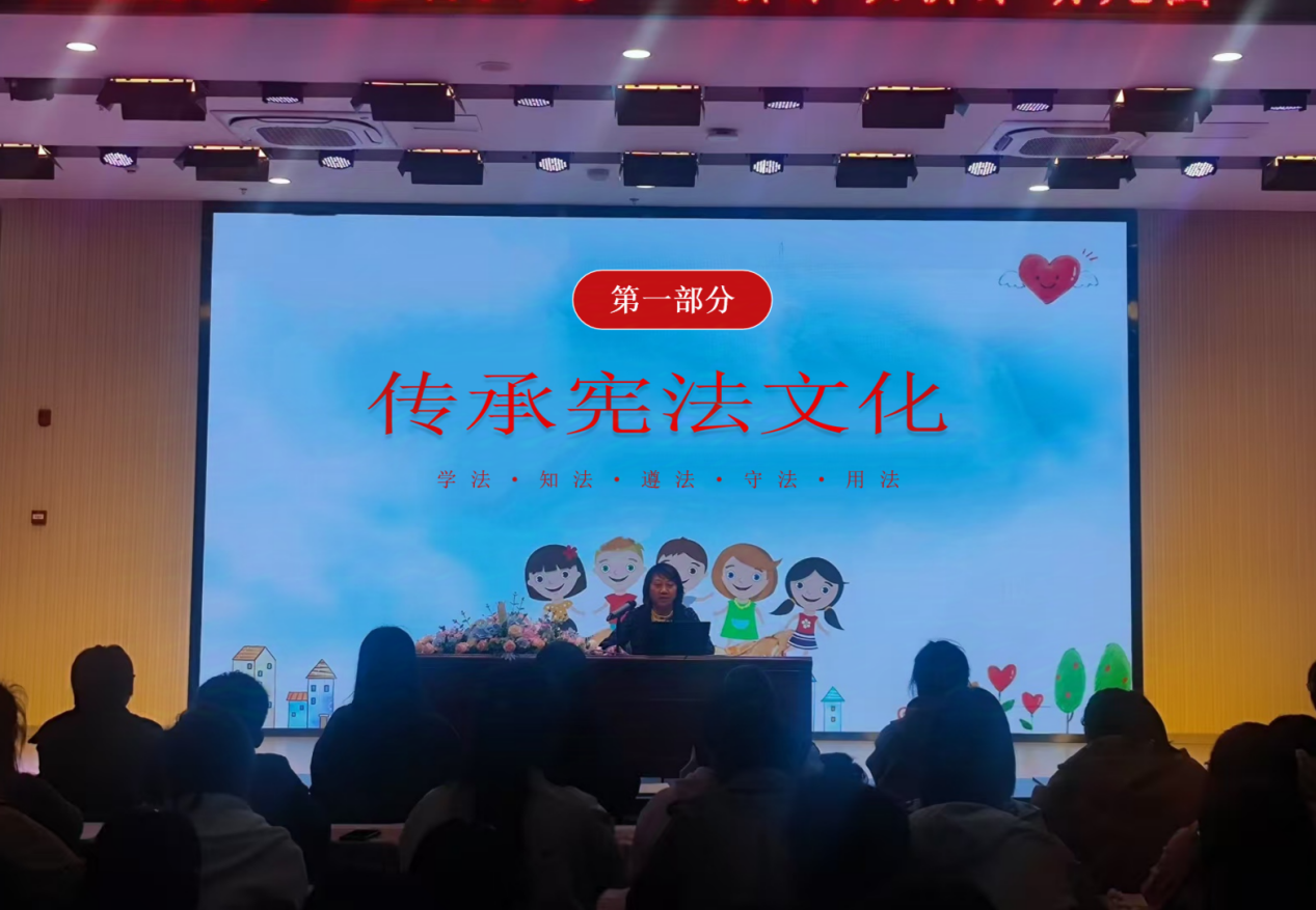 在“憲法宣傳周”活動期間,栟茶幼兒園特別邀請了法治副校長——栟茶鎮(zhèn)司法所所長陶亮。陶所長為全體師幼帶來了一場以“學(xué)習(xí)憲法”為主題的精彩普法講座。他結(jié)合孩子們的年齡特點(diǎn),運(yùn)用生動的 PPT、案例和動畫展示,深入淺出地講解了憲法的基本原則和重要性。用孩子們易于理解的語言,解釋了憲法如何保障每個人的基本權(quán)利和義務(wù),以及在日常生活中如何運(yùn)用法律保護(hù)自己。尤其強(qiáng)調(diào)了與未成年人密切相關(guān)的法律,如《中華人民共和國未成年人保護(hù)法》《中華人民共和國婦女兒童權(quán)益保護(hù)法》以及環(huán)境保護(hù)等方面的法律。孩子們聽得津津有味,積極與陶所長互動。此次活動不僅讓孩子們增長了憲法知識,更深刻認(rèn)識到憲法在維護(hù)社會穩(wěn)定和保障公民權(quán)利方面的重大作用。