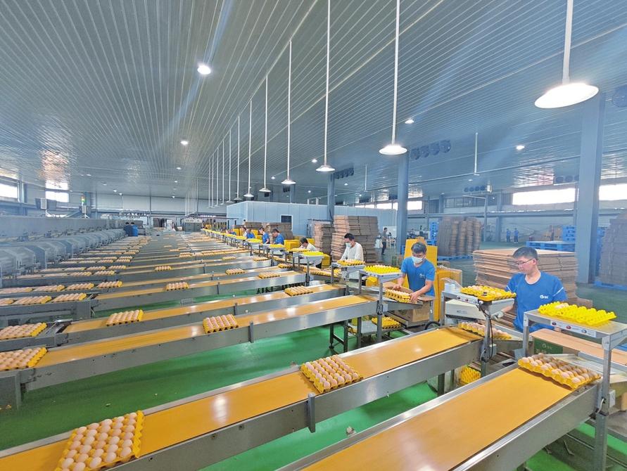 臨猗縣北辛鄉(xiāng)蛋雞養(yǎng)殖場工人在分揀雞蛋
