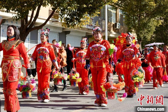 1月15日,2025年安徽省“村晚”首場示范展示在阜陽舉行。圖為民舞踩街表演。記者 韓蘇原 攝