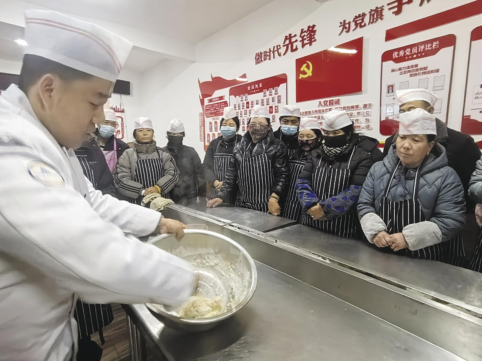 “前兩天學(xué)習(xí)了香煎玉米餅、香菇饅頭的制作方法,今晚又學(xué)了家常油餅、棉花杯的做法,培訓(xùn)確實(shí)有收獲……”38歲的華毛措,是村里的精準(zhǔn)扶貧戶。多年來,她一直在家照顧兩個(gè)孩子,丈夫是一名司機(jī),經(jīng)濟(jì)收入微薄。“聽說這兩天村里有免費(fèi)面點(diǎn)制作技能培訓(xùn)班,我就趕緊報(bào)了名。我想學(xué)成之后,一來改善自家的餐桌,二來提高自己的能力,增加就業(yè)的底氣?!迸嘤?xùn)過程中,華毛措認(rèn)真地做好筆記,踴躍地提問交流,積極參與實(shí)操練習(xí),掌握了一技之長,增加了奔向新生活的信心和底氣。