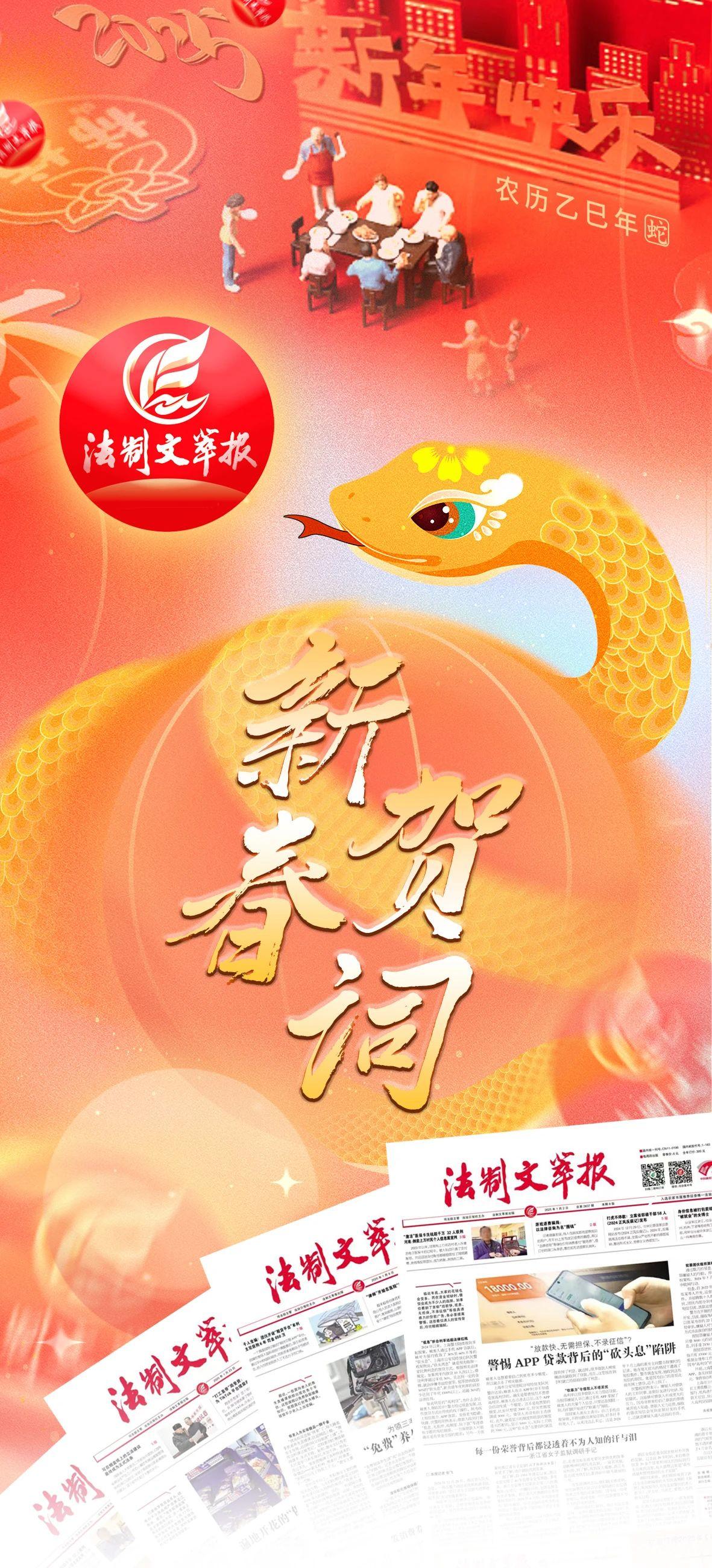 值此蛇年新春之際,法制文萃報感謝各位讀者朋友過去一年來對我們工作的信任和支持,也給各位讀者朋友及家人送去蛇年最美好的祝福。祝靈蛇獻瑞,祥蛇獻福,蛇舞翩躚,蛇躋新程!